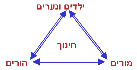 מודל החינוך המובא בתרשים מציג את האינטראקציה שבין שלושת הגורמים העיקריים שבו - מורים, תלמידים והורים.